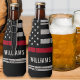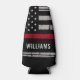 Thin Red Bottle Cooler - design de bandeira americana em cores de bandeira de bombeiro, design angustiado. Este bombeiro personalizado pode resfriar é perfeito para presentes de bombeiros, favoritos para festas de aposentadoria de bombeiros, festas de formatura de bombeiros ou para celebrar seu bombeiro favorito. Perfeito para todos os bombeiros, bombeiros e membros da família e apoiadores dos bombeiros. Personalize com o nome. COPYRIGHT © 2020 Judy Burrows, Black Dog Art - Todos Os Direitos Reservados. Bombeiro Personalizado Frio Vermelho Fino Fresco