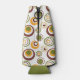 Este refrigerador de garrafas tem uma design moderna do século médio de círculos concêntricos em verde, laranja e castanho sobre um fundo branco.