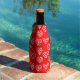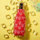 Este refrigerador de garrafas tem um design moderno do século médio de um Namorados de coração branco disperso num campo de vermelho.