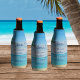 Oceano, praia tropical, areia, aquarela litorânea, noiva e noiva rústica, ouro moderno 50º aniversário de casamento, refrigeradores de garrafas. Simples tipografia, roteiro. Design de praia tropical pintada à mão pela artista Monika Howarth. Personalize-o com seus detalhes.
