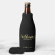 Padrinhos de casamento personalizados de script moderno Coletor de garrafas apresentando o nome de padrinho de casamento personalizado no estilo de fonte do script moderno de ouro com título e data de casamento no estilo de fonte sans serif moderno em fundo preto. Também perfeito para Madrinha de casamento, Flor Girl, Mãe da Noiva, Padrinhos de casamento, Melhor Homem e muito mais. Nota: Os detalhes da folha são simulados no trabalho de arte. Não será utilizada nenhuma folha de alumínio real no fazer deste produto.