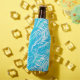 Este resfriador da garrafa é mostrado num impressão de palmeiras tropicais. Cor Turquesa Azul Personalize este item e adicione-o ou comprar como está. Imagem do stock