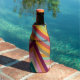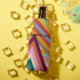 Este refrigerador de garrafas tem um design retrô dos anos 70 é feito de camadas de cabeça para baixo Vs em três lugares, todos em cores retrorreflectoras.
