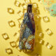 Um design de produção digital de seixos, rochas e folhas de outono na borda dos rios coberta por pequenos blocos com efeito digital.