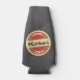 O emblema do design de retro legal é modelado após uma porta copos de cerveja vintage. Fundo do quadro com cores vermelho, preto e camelo vintage. Personalize com seu nome, lema, nome comercial ou outro texto. Procure um abridor de porta copos e garrafa de cerveja. O texto diz: nós servimos cerveja fina.