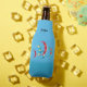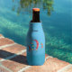 A pipa azul a surfar em garrafas com texto personalizável. Papagaios coloridos sobrevoam o oceano num dia de verão.