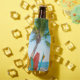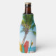 O Tropical Surfing Beach Surfing Can Coolers apresenta surpresas coloridas que se erguem na areia com uma palmeira, praia e oceano ao fundo. Elaborado por ©Evco Sports www.zazzle.com/store/evcosports