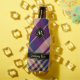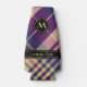 Design púrpura, ouro amarelo e tartã azul. Um padrão perfeito. Texto personalizado e monograma.