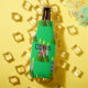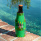 Este refrigerador de garrafas tem um design de Natal de velas feitas de retângulos decorados com estrelas, ovais ou diamantes com árvores agrupadas ao redor do fundo.
