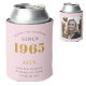 Porta-lata 60º Aniversário Nome 1965 Foto de Cinza Rosa Chic