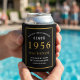 Celebre um aniversário de 70 milestone com esta elegante e personalizada lata mais legal! Este isolante de na moda é o favor ou presente perfeito para alguém nascer em 1956. Recursos do produto: Personalizado: adicione facilmente um nome e o ano de sua escolha. Alta qualidade: feito de material resistente e isolado para manter bebidas frias. Elegante Design: apresenta um fundo preto na moda com um aspecto de folha de ouro falso inspirado na safra. Perfeito para: festas de aniversário de 70, comemorações de aniversário ou presentes de marco. Como personalizar: Basta clicar no botão "Personalizar" para inserir o nome e o ano que você deseja adicionar ao seu refrigerador. As ferramentas de personalização fáceis de usar da Zazzle o guiarão pelo processo. Tornar o seu aniversário de 70 inesquecível com esta manutenção única e prática!"