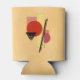 Um triângulo preto dividido em segmentos, uma banda trapezoidal preta dividida em duas, um círculo vermelho, um retângulo amarelo, um quadrado vermelho pálido, um círculo roxo, e uma característica quadrada laranja nesta arte abstrato de sobreposição de formas por Richard H. Fay.