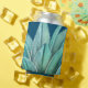 Tendy desenhando planta de agave verde-marinha sobre fundo azul