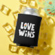 Esta design apresenta a frase Amor vence com um coração colorido do arco-íris.