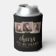 Este aniversário de 40 anos pode resfriar personalizado apresenta uma colagem de três fotos quadradas personalizadas acima da frase "Saúde a 40 anos" em um elegante script de caligrafia dourada e sans serif font em um fundo preto. Adicione o nome do convidado de honra e o aniversário abaixo. Uma forma excelente de celebrar alguém que está fazendo quarenta anos!