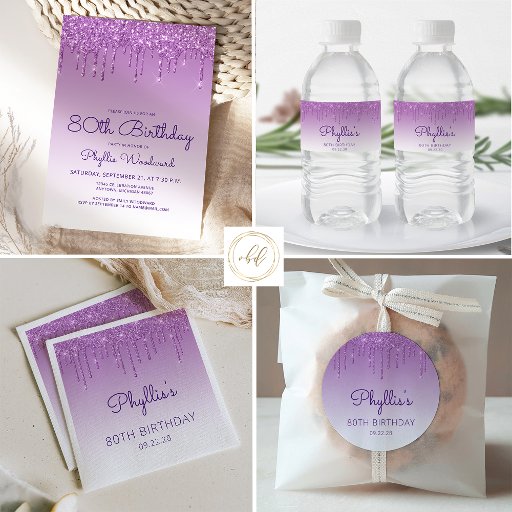 Purple Glitter Drip 80th Birthday PartyCriado por Akhates Designs