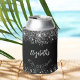 Porta-lata Aniversário do script de brilho de prata preto