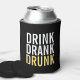 Beber Bebado | Black and gold Chic Funny Can Cooler com a frase "Drink Drank Bebado" no estilo de letra de texto em negrito. Note-se que a folha de ouro apresentada no produto é um efeito impresso e não uma folha de ouro real.