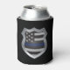 Mostre seu suporte para polícia com esta bebida koozie de estilo de escudo de linha azul fina.