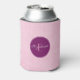 Personalize com seu monograma e nome em um círculo roxo. O fundo é cor-de-rosa com pequenas bolinhas brancas giras.