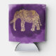 Belo elefante de ouro tribal desenhado a mão num fundo pincelado roxo.