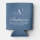 Mantenha suas bebidas elegantes e frescas com este Resfriador de Lata de Seltzer de casal de noivos personalizado moderno em azul desbotado com texto branco em negrito. Perfeito para casamentos, festas de despedida de solteiro e celebrações especiais, este resfriador de lata personalizado é um presente atencioso para o noivo. Personalize com seu próprio texto para criar um souvenir único que combina design moderno com função prática.
