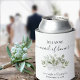 Este belo casamento pode ser mais legal é uma maneira divertida e atenciosa de obrigado sua madrinha de casamento. Ele apresenta um design de som bótico rústico com letras elegantes de script e um aglomerado de cores d'água, eucaliptos e verde em tons de menta, musgo e sábio verdes. A legenda diz: Madrinha de casamento, com espaço para seu nome, assim como os nomes do casal e da data do casamento abaixo.