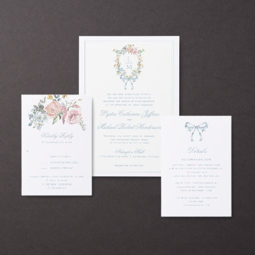 A elegante crista de monograma de coroa d'água dá a este casamento uma bela e eterno aparência que qualquer noiva sofisticada amará. Personalize este guardanapo com seus nomes e data de casamento dentro da crista. As cores incluem, azul claro, rosas claro e verde.