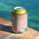 O Chá de casamento de Amar "Cheers to Love" pode arrefecer / Modelos koozies - Flores de Hydrangea de Cor Branca Elegante e Luzes de Cordas em Fundo de Gradação Rosa. Um Design perfeito para o seu grande dia. Todo estilo de texto, cores, tamanhos podem ser modificados para ajustado das suas necessidades!