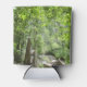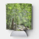Fotografia natural de um belo cenário sereno e floresta tropical com filtro de luz solar suave através da cobertura de folhas verdes, primavera, e um fluxo suave que flui pacificamente ao lado de um caminho natural de rochas. Um belo lembrete da magia pura e simples da natureza, do Canadá, e das florestas tropicais subtropicais ao longo da costa noroeste do Pacífico da América do Norte.