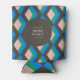 Este cooler de latas personalizado é um favor de festa elegante e funcional para chás de noiva, despedidas de solteira ou eventos comemorativos. Com um padrão geométrico ousado em tons vibrantes de azul, verde e rosa suave contra um fundo escuro, ele adiciona um toque moderno e divertido a qualquer encontro.