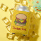 Ilustração de desenho animado cheeseburger. Imagem do contorno da comida de lixo ícones de fundo amarelo. Texto personalizado de ambos os lados.