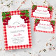 "Ela é a Cherry on Top", tema do chá de fraldas de outono com cerejas e xadrez de gingham vermelha.