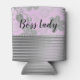 Neste resfriador na moda é um padrão floral prateado num pano de fundo cor-de-rosa onde você pode personalizá-lo com um nome, logotipo ou frase, ou manter como está com as palavras "Senhora Chefe" que é limitada por um colar prateado e abaixo que são listras prateadas brilhantes para chic adicionado.