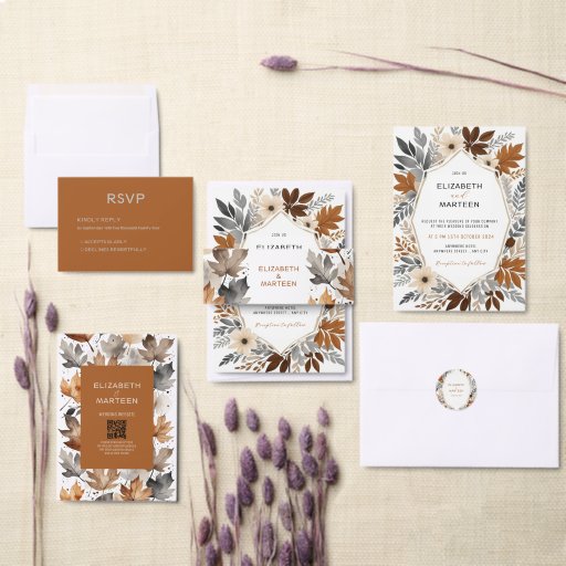 Mantenha suas bebidas legal em estilo com esta cinza, o padrão das folhas marrons pode ser mais legal, perfeito para adicionar um toque rústico de outono à sua celebração de casamento.