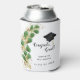 Crie uma lata única para resfriar uma festa de formatura com o design que contém um ditado do Formando de Parabéns, que é decorado com um boné formando e elegante verde esmeralda e verde-ouro eucalipto em um fundo branco. O modelo facilita a digitação do nome e do ano do formando.