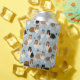 Cães de Collie Rough Cute sentam-se e ficam de pé e rollover com casacos sápidos, tricolores, unidos e brancos com ossos de cão espalhados e padrões de pegadas.