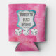 O Bunco pode chorar para manter a sua bebida enlatada favorita fria enquanto joga os seus dados na noite do Bunco. Cor-de-água rosa colorida sotaque o design do logotipo United We Roll, Membro da Irmandade Bunco. Três dados brancos de sorte para ajudá-lo.