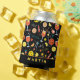 Legal padrão com bolas de picles e bebidas, duas coisas favoritas para se fazer neste verão. Elementos laranja e amarelo sobre fundo preto. Com nome e com texto personalizado Feliz visto e melhores votos para seus futuros jogos!