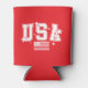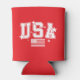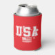 O copo térmico é mostrado em uma cor vermelha com uma estampa da bandeira dos EUA.