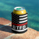 Thin Red Can Cooler - design americano de bandeira nos Estados Unidos em cores de Sinalizador de Bombeiro. Este corpo de bombeiros personalizado pode resfriar é perfeito para presentes de bombeiros, favoritos para festas de bombeiros e para entregar em promocionais de bombeiros ou eventos de suporte. Adquira essa linha vermelha fina pode resfriar grandes quantidades para os bombeiros e resgate de incêndios. Personalize com as iniciais do departamento. COPYRIGHT © 2020 Judy Burrows, Black Dog Art - Todos Os Direitos Reservados. Bombeiros Personalizados - Linha Vermelha Fina Pode Resfriar