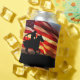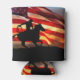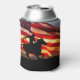 Vaqueiro americano, um vaqueiro galopando em seu cavalo com corda na mão uma bandeira americana ao fundo. Um país patriótico, um copo aconchegante ocidental ou mais legal!