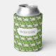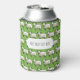 A cute sheep pattern on a can cooler. Use "Personalize this template" to add your own text and create a unique, customized accessory; text changes are reflected on both sides. Meet the flockers! A fun can cooler design featuring a pattern of sheep, drawn in a blocky, pixel art style, on a green background.