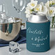 Keep your drinks cold in style with our Deep Teal Script Minimalist Wedding Can Cooler! This custom cooler can be personalized with the names of the bride and groom along with their special date. A perfect memento for guests to remember your big day.
