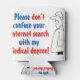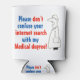 O médico diz: "Por favor, não confunda sua pesquisa na internet com o meu diploma de medicina". Cartoon de um médico no seu casaco de laboratório branco.