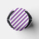 Diagonal purple and white stripes create a bold, patterned background. The alternating colors convey a lively and energetic tone.