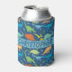 Padrão de silhueta de dinossauro que você pode personalizar e adicionar seu próprio nome. Tyrannosaurus Rex, titanossauros, Tricerátopo, raptores, Ankylosaurs, Dino-Birds, Stegosaurus, Apatosaurus, Pteranodon e mais num padrão colorido em fundo azul, e dinossauros em verde, azul, amarelo e laranja.