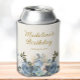 Porta-lata Dusty Blue White Floral Dourado Aniversário