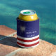 Esta diversão pode resfriar é decorada com um cintilador e listras vermelhas e brancas em um fundo azul patriótico. Ela é ainda mais aprimorada com o ditado Happy 4 de julho e o nome da família, que é fácil de personalizar ou apagar, se preferir.