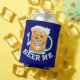 Esta espuma engraçada de cerveja pode arrefecer design tem uma caneca de desenho animado com as palavras "Beer Me". É uma design engraçada para qualquer amante de cerveja. O plano de fundo personalizável é azul. O design repete-se de ambos os lados.
